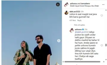 While many admired the pictures, one social media user questioned the couple for not removing shoes before entering the mosque. Sonakshi noticed the comment and didn’t hold back from sharing her views.