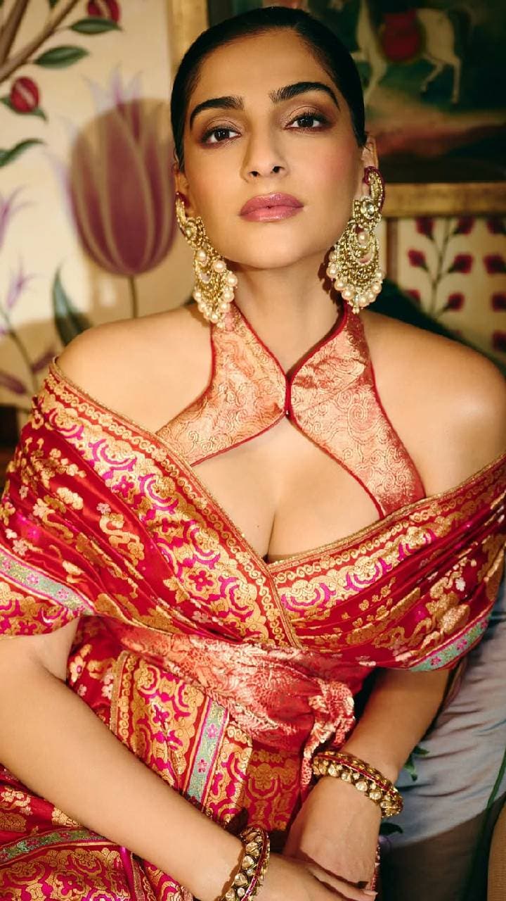 Sonam Kapoor is known for her outfits and fancy jewellery. The actress wore a statement chandbali with a zari silk outfit, which can be the best option for a Diwali look.