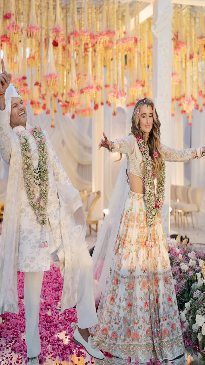 Sophie Shine Wedding Lehenga: Former Team India cricketer Shikhar Dhawan and Sophie Shine have tied the knot. Iris Sophie was seen giving competition to Indian brides in wedding lehenga, mehendi and haldi.