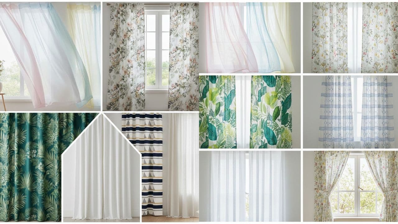 If you want a minimalist and elegant look, choose pastel colored sheer curtains. Shades like baby pink, mint green, sky blue are perfect for a spring villa look. These curtains make even small rooms look bigger and airier.