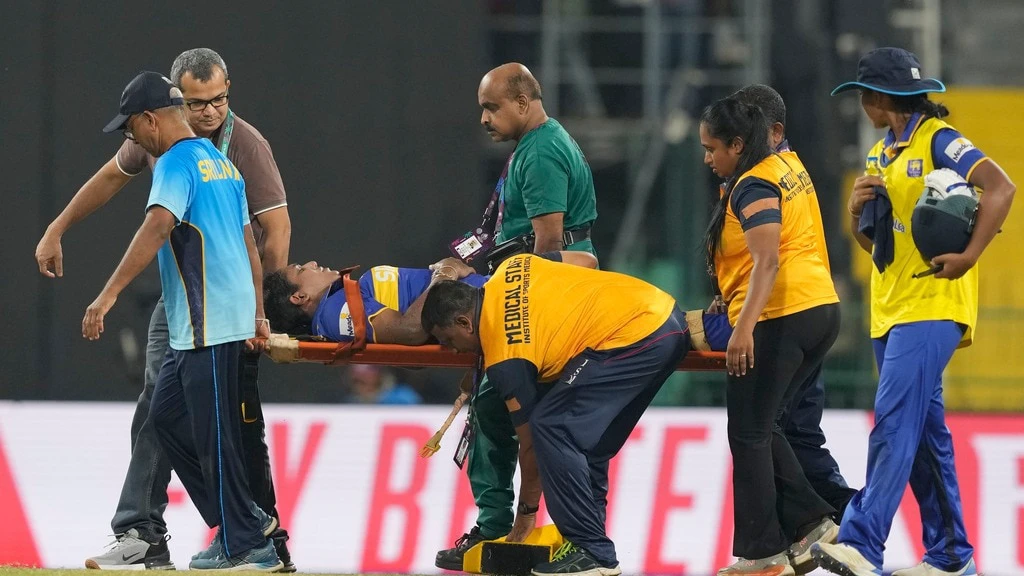 Sri Lanka suffered a major blow during Match 12 of the ICC Women’s World Cup 2025 against England on Saturday, October 11, as their captain, Chamari Athapaththu was stretchered off the field.