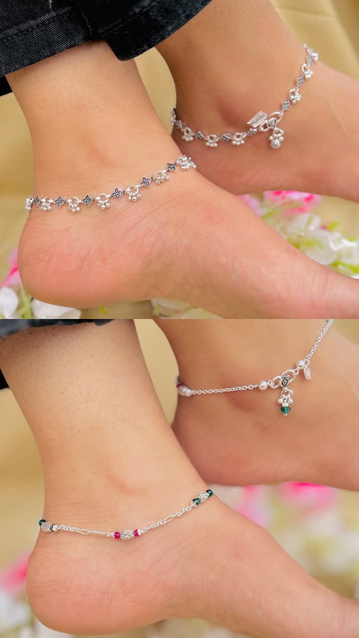 There are two types of artificial anklets in the picture, beaded and on snack chain. One has a slight star attached and the other has a chunky pattern. Both of these will be available for Rs 150, which is best for everyday use.