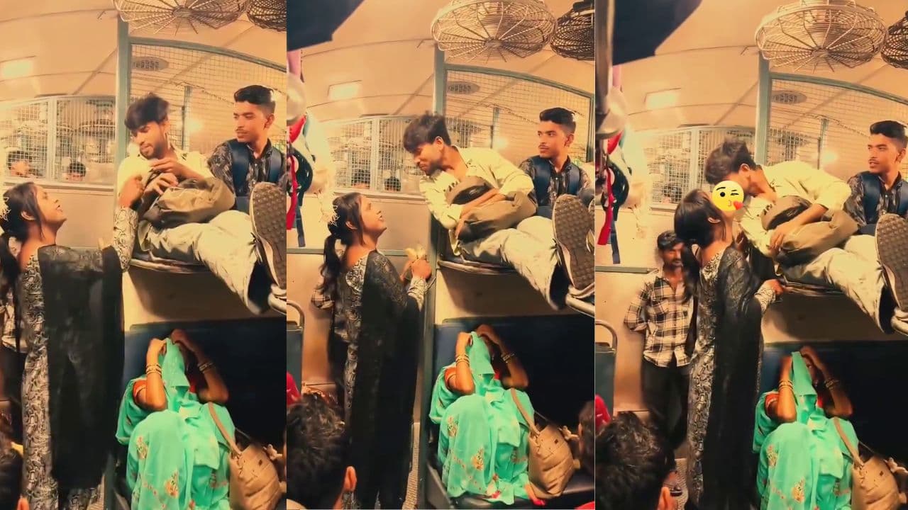 A young man is sitting on the top seat of the train. Just then a transgender woman comes there. The young man gives him a 10 rupee note. After taking the money, the transgender woman blesses it by saying ‘Bhala ho’. Then the young man puts his lips forward to ask for a kiss. For a moment the transgender woman refuses to kiss. But on repeated insistence of the boy, she kisses him on his lips. Another passenger recorded this entire incident in his mobile.