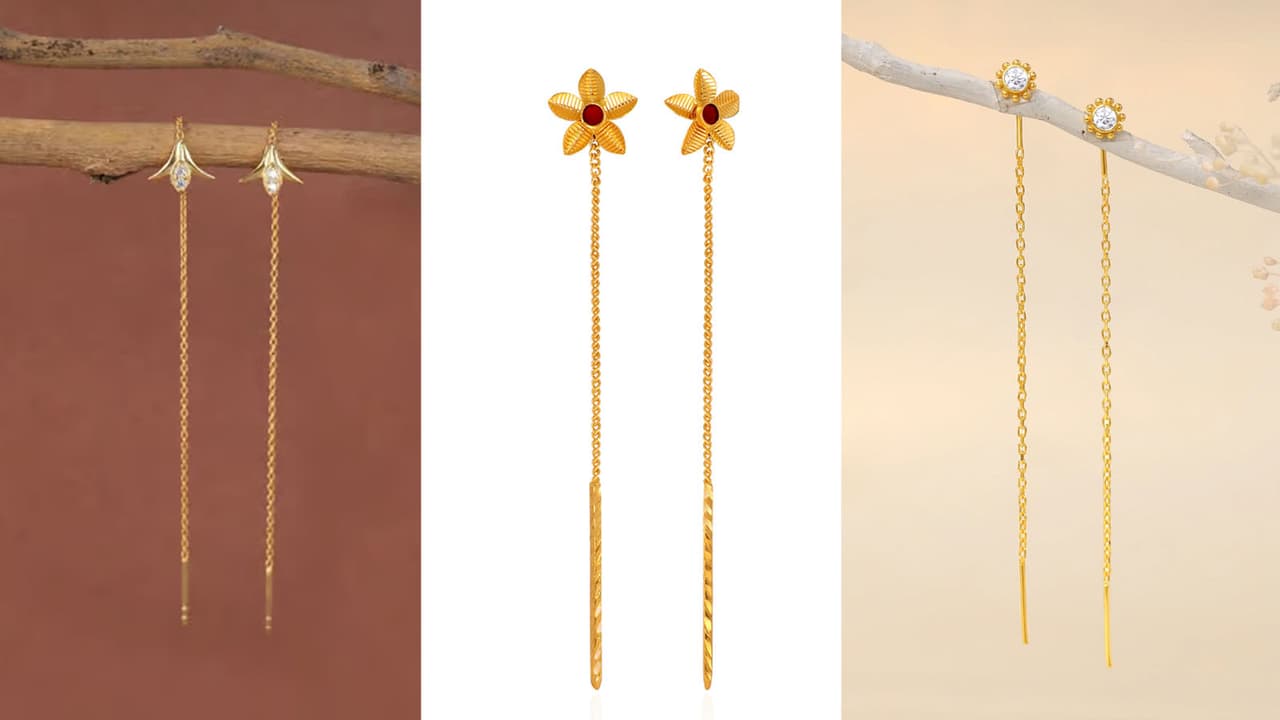 No matter how much gold jewelery changes, the craze for needle and thread earrings never diminishes. These earrings, which are very light, modern and give instant glow to the face, have become the first choice of new daughters-in-law these days. The special thing is that they can be made beautifully even with just 1 gram of gold. The light chain, delicate pendant and minimal stone work, all together create a design that goes with every outfit and remains trendy for a long time. We have brought for you 5 stylish and modern pendant needle-thread designs, which you can easily get custom made from your jeweler.