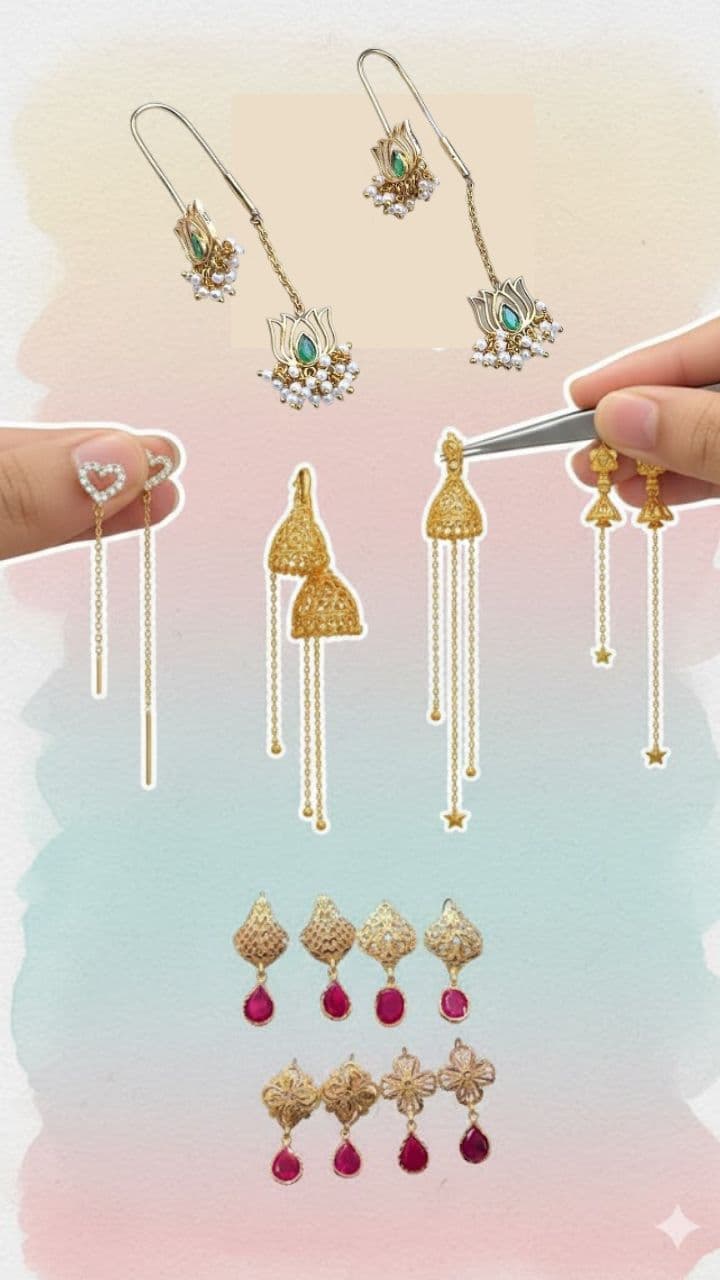 Sui Dhaga Earring: Give 5gm of beautiful needle thread to your wife on her birthday, the design will adorn the ears beautifully.