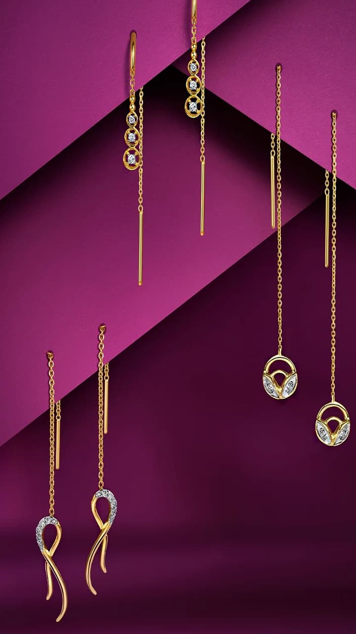 Sui Dhaga Earrings: Give relief to your wife from troubles on Women’s Day, 7 gold designs of Sui Dhaga earrings. Sui Dhaga Earrings Gold Designs For Wife In Womens Day