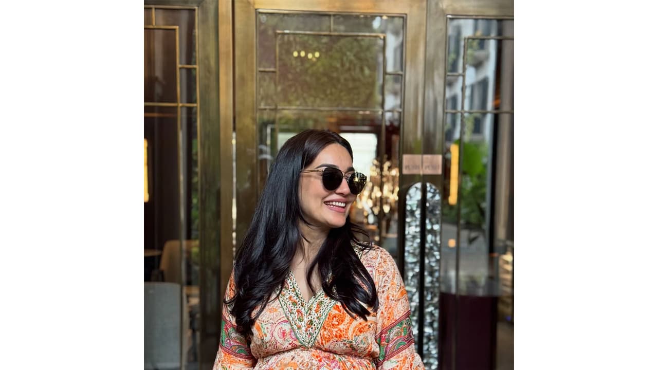 Mom-to-be Surbhi Jyoti on Saturday shared several pictures in which she could be seen flaunting her baby bump. Surbhi looked super cute in a printed, flowy dress. What makes it stand out even more is how simply she’s styled it. The loose, softly waved hair adds a natural, unstructured feel. The orange and yellow hues give the dress that perfect summer energy. And with black shades, she elevated her look stylishly.
