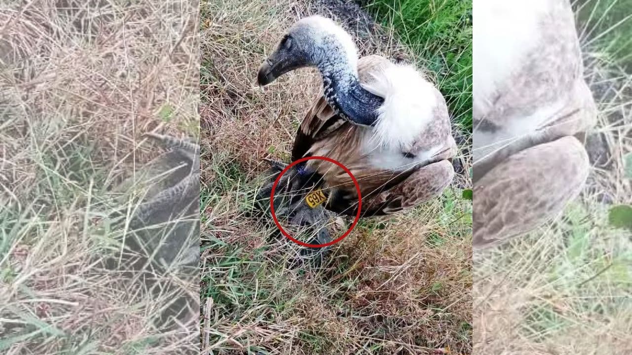Locals who saw the large bird sitting in an unusual condition on the farm immediately called 112. Upon receiving the information, the police rushed to the spot, took the vulture into custody, and moved it to the Jhalki police station. An identification number tag was found attached to the vulture’s leg, making it clear that a scientific study was being conducted on the bird.