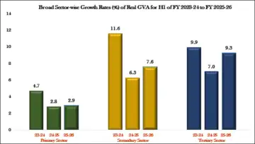 Real Gross Value Added (GVA) for H1 stood at Rs 89.41 lakh crore, registering a 7.9 per cent increase. The NSO highlighted improvements across sectors, with both manufacturing and services maintaining momentum.