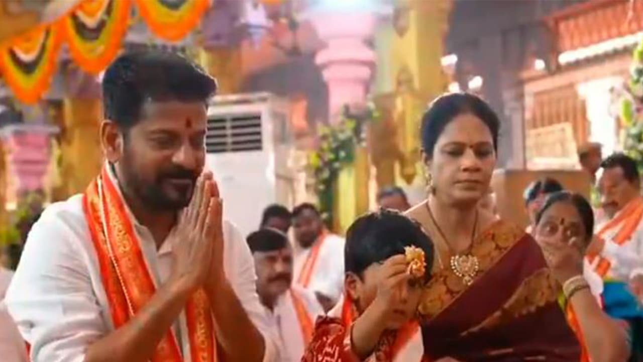 Telangana Chief Minister Revanth Reddy on Monday, along with his family members, offered prayers at Sri Gnana Saraswathi Devi temple in Basara, Nirmal District.