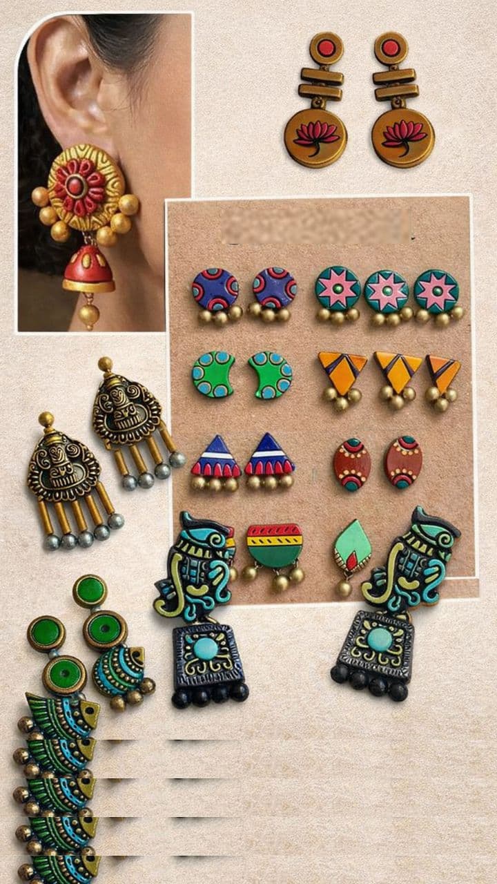 This design of terracotta earrings in bird style is in drop style, in which a bird is made, which looks beautiful and elegant due to the special painting.