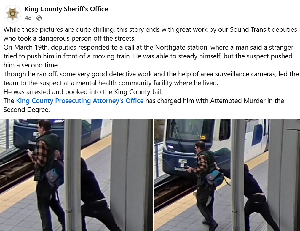 Officials from the King County Prosecuting Attorney’s Office said the attack showed clear intent. They stated that the suspect’s actions suggested he wanted to cause maximum harm, especially given the timing near an incoming train.