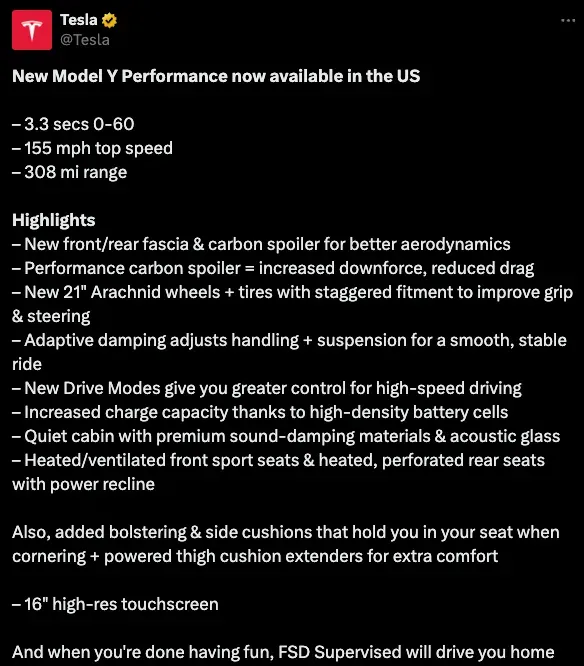 Separately, Tesla also launched the Performance variant of the Model Y SUV on Tuesday. The most premium variant of the SUV has a starting price of $57,490. However, the vehicle is not available for lease.
