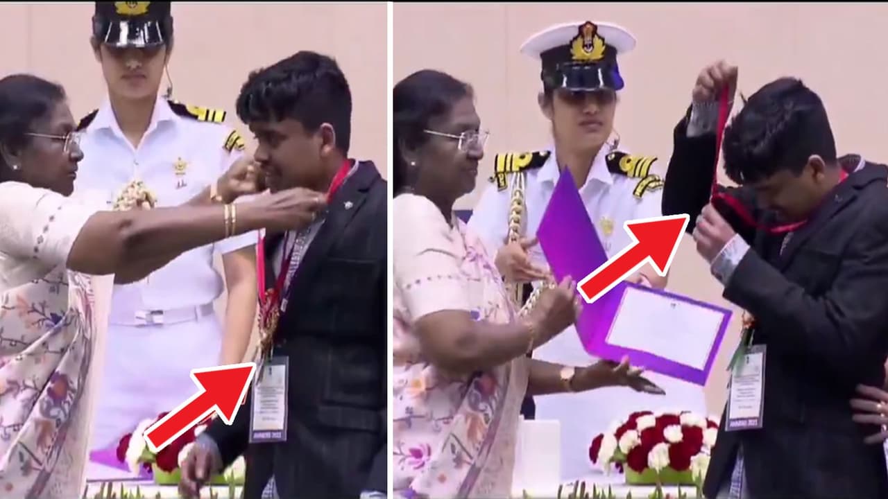 New Delhi: It is everyone’s dream to receive a medal or award from the President who holds the highest position in the country. But, recently the behavior of a boy who received a medal from President Draupadi Murmu has surprised everyone. The video of the boy who took the medal off his neck immediately after receiving it and did not even touch the certificate is going viral on social media, which has sparked a big debate.