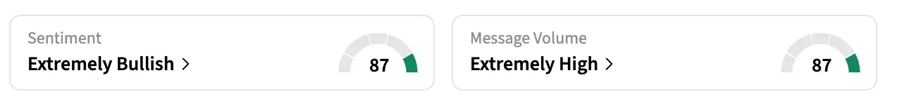Stocktwits retail sentiment for the stock changed from ‘neutral’ to ‘extremely bullish’ while message volume jumped to ‘extremely high’.
