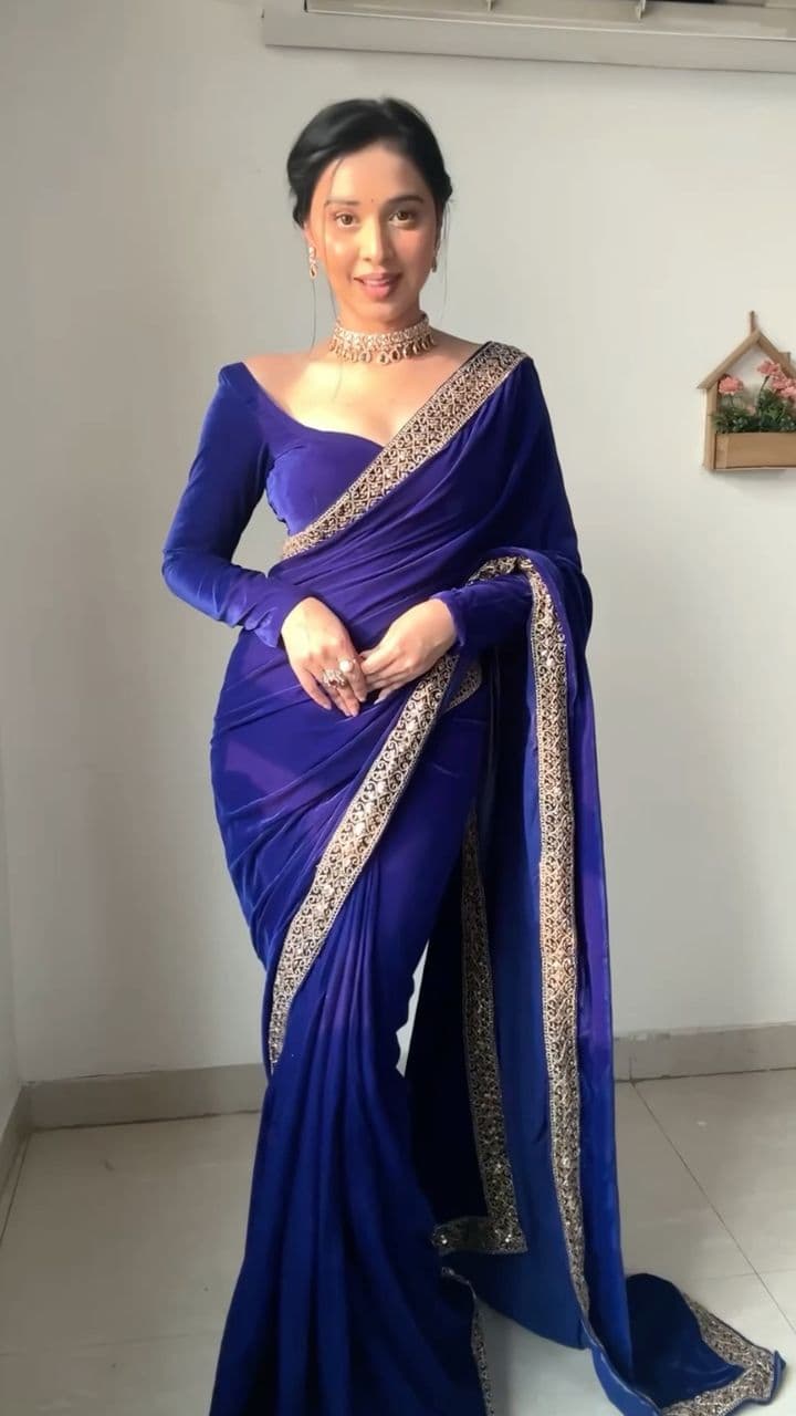 In the festive season, such a saree with embroidery work should be in every closet. Here one strip blouse and green color stone necklace is worn, you will look beautiful by recreating this look.