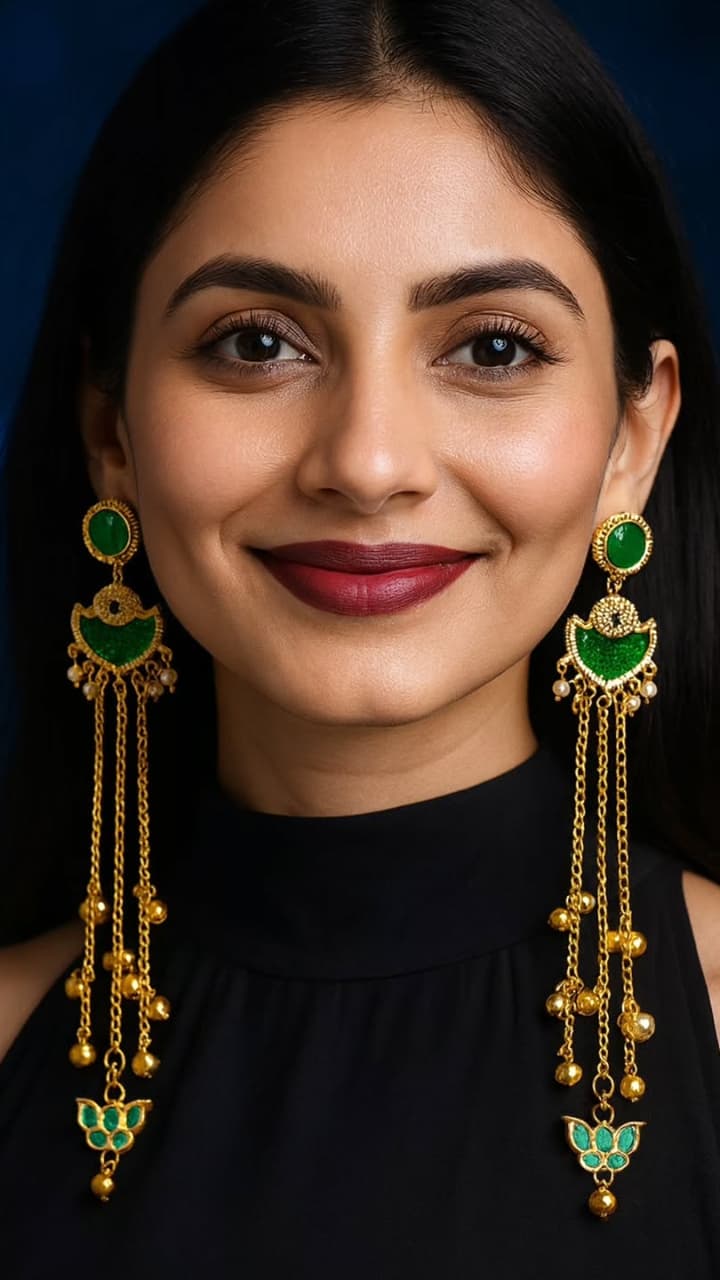 Crystal Half Moon Ghungroo Earrings are perfect for royalty. Gold plated design, stones look beautiful. These may not be chosen daily but can be chosen for wedding and festive season.