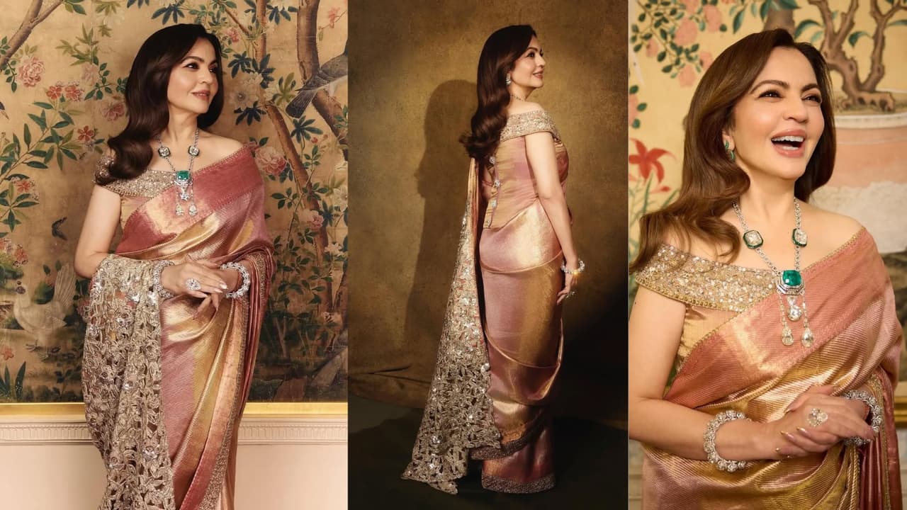 Nita Ambani Saree Designs: Even at the age of 60, good beauties fail in front of Nita Ambani’s grace. Once again she stole the show in a Kanjeevaram saree at a function organized at the British Museum in London. Nita Ambani’s look in modern jewellery, settled make-up and stylish blouse was a sight to behold. See every detail related to her look here.