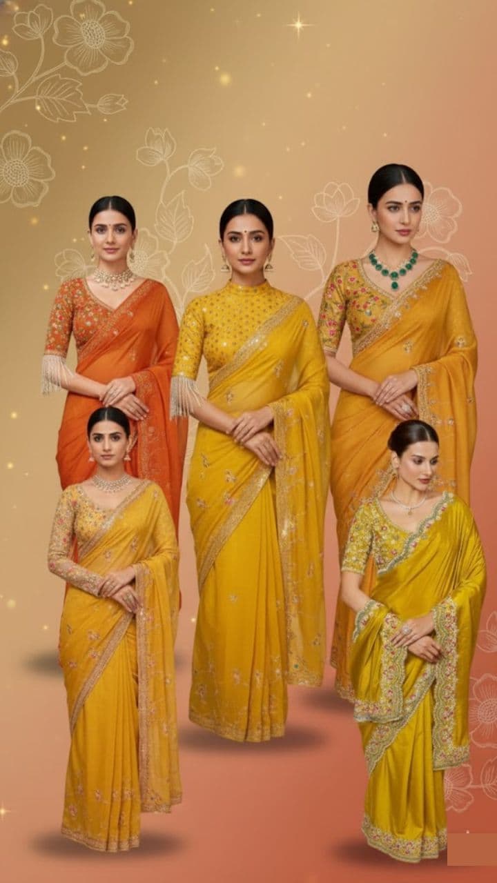 This blouse has a round, high-neck design. The entire blouse has flowery embroidery made of silver threads and tiny mirrors. This blouse can be worn with yellow, green, red or blue sarees.