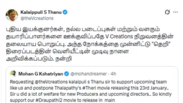 Post this, Producer Kalaippuli S. Thanu announced the postponement on behalf of V Creations via a post on X, stating, “V Creations’ primary responsibility is to promote new directors, good works and budding producers. With that aim in mind, the release date of the film “Theri” will be announced tomorrow. Thank you.”