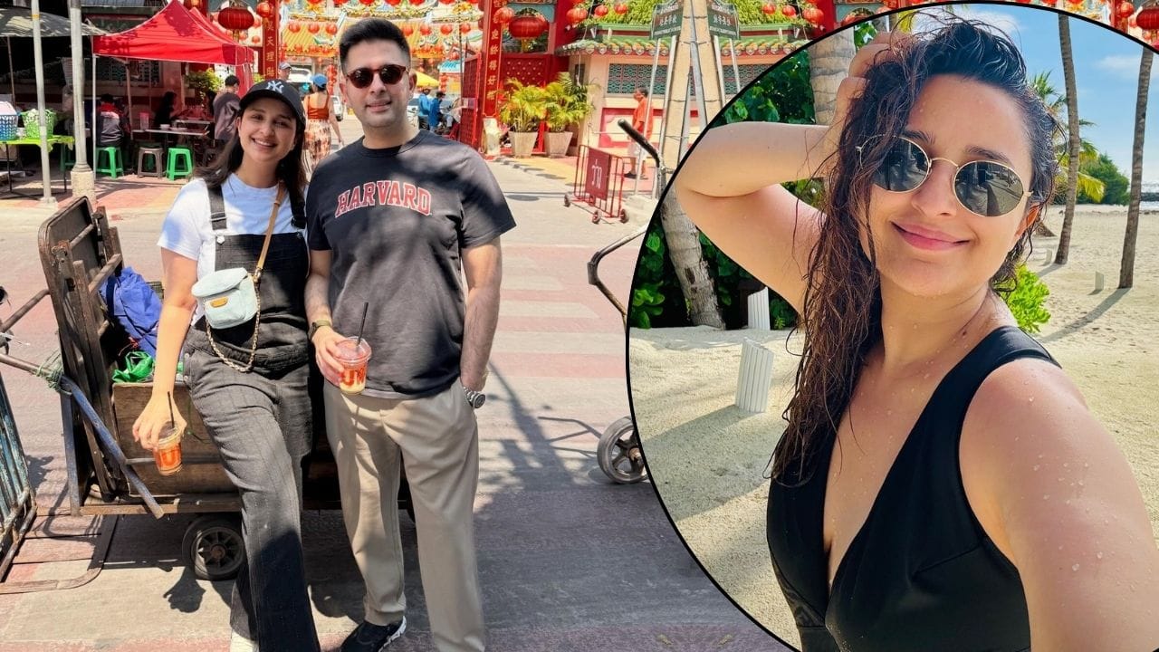 If you want to go somewhere to chill out with the girl gang and have an evening event, then take ideas from this look of Parineeti. The actress has worn an off shoulder flared short dress. Smokey eyes, subtle makeup, minimalistic statement jewelery along with black high heels and goggles make her look high fashion.