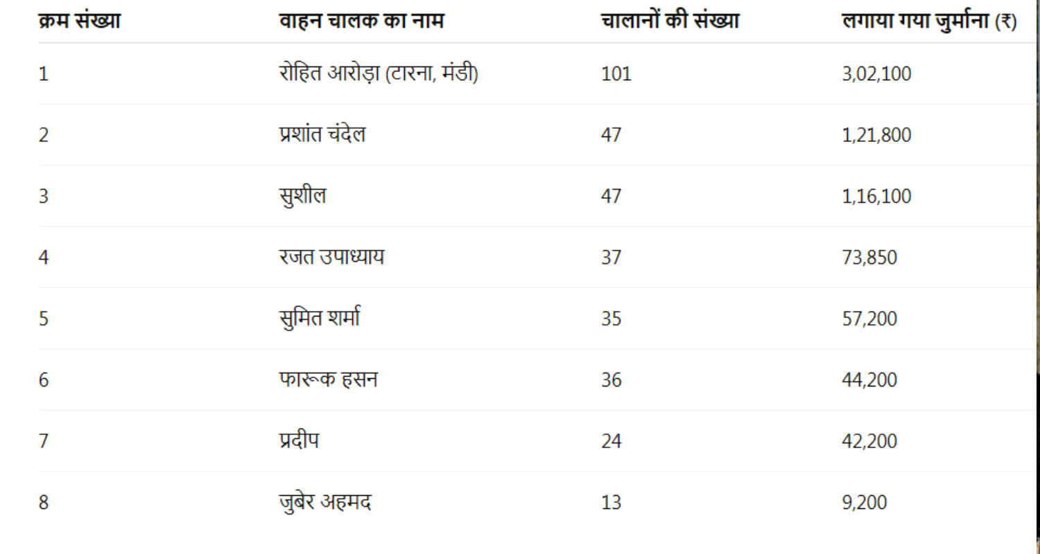 The matter has come to light from Mandi district. Here Rohit Arora of Tarna of Mandi city has become a challanveer by getting 101 challans deducted. 101 challans have been issued for his vehicle. Taking a strict stance, the court has recovered a fine of Rs 3,02,100 from Rohit Arora. Apart from this, the court has imposed heavy fines on other drivers also.