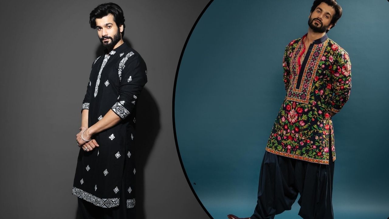 Short kurtas are also in trend. Sunny is wearing a black color short kurta, in which red thread work is done. Black Pathani is with salwar wear with this. This black color kurta set will give you a dashing look.