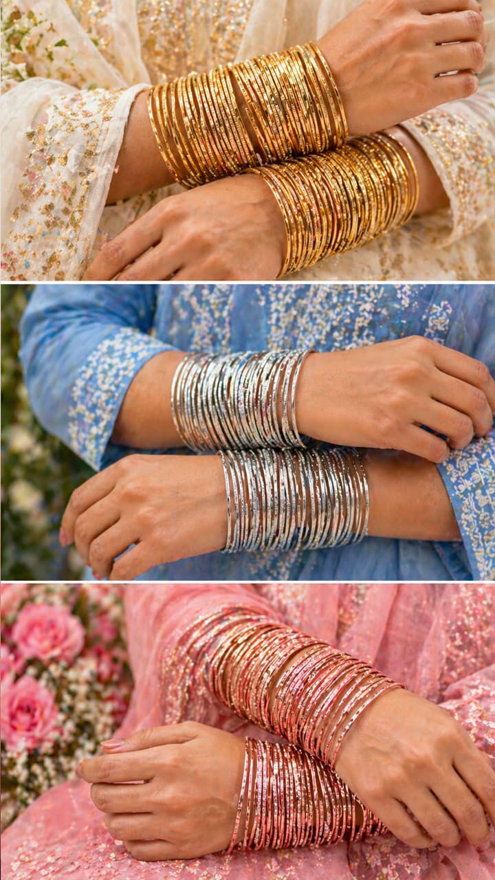This bangle design is very thin. You will get it in both silver and golden colors. These are the best two colors for college girls, which can be worn as daily wear also.
