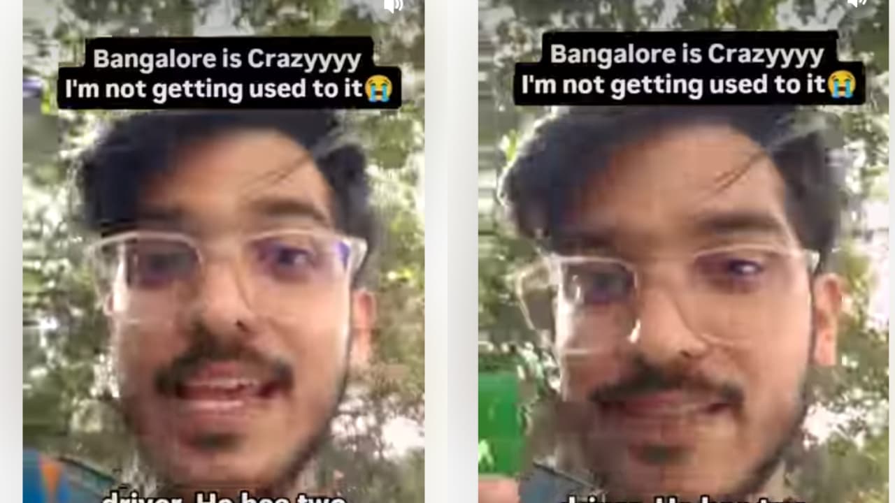 The text overlay on the video read: “Bengaluru is crazy. I am not getting used to it.”