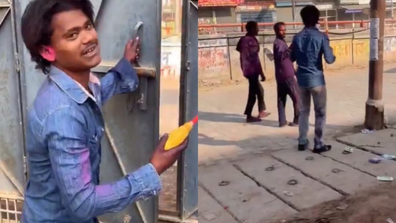 In this viral video you can clearly see a young man carrying a water gun. Who fills the dirty water from the pit inside the toilet seat in a Pichkari and then pours it on the people.