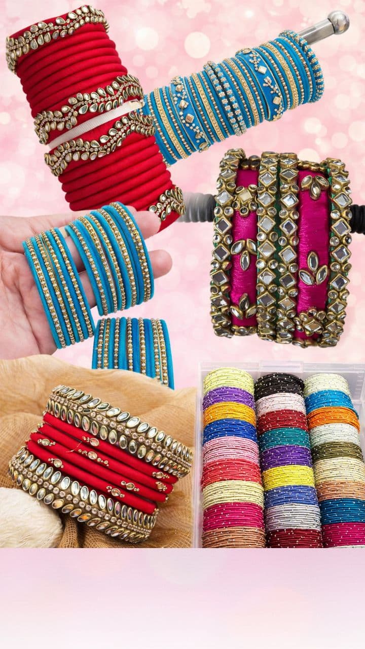You can customize this design of Bridal Bangle with Stone Chain for the bride. You can wrap glass, pearl, kundan and stone chains in it.