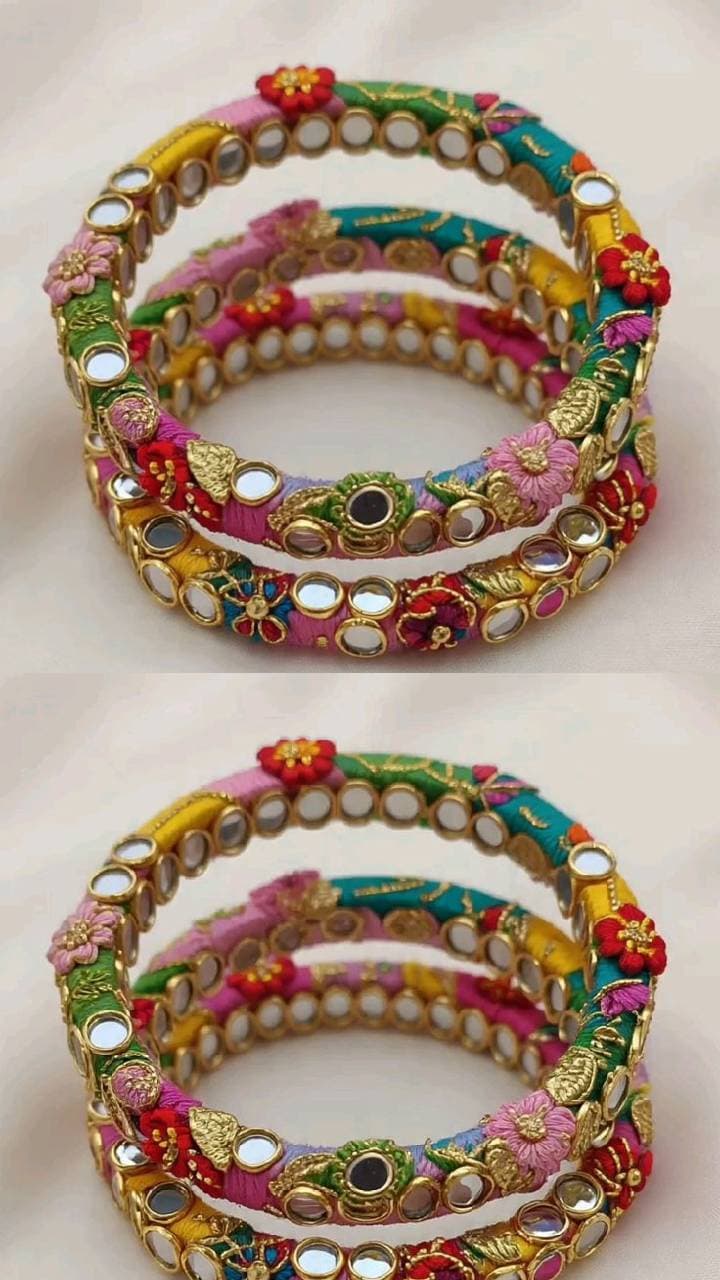 Less threads are used in big mirror bangles, due to which the shine of the mirror is more visible in the bangle. You can try such bangles with oxidized bangles.