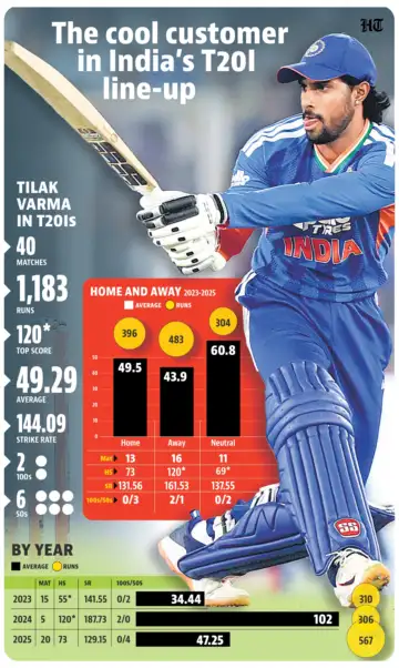 But in the middle of the chaos that aggression can sometimes bring, Tilak Varma is an oasis of calm and precision, and come the T20 World Cup in February, he just might be the most important cog in the Indian batting line-up.