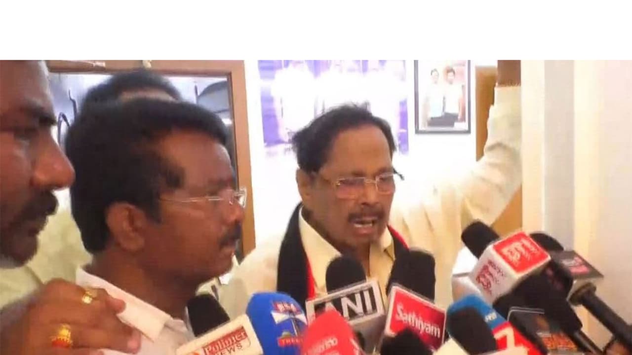 Durai Murugan arrived in Katpadi by train from Chennai on Monday. From Katpadi railway station, he proceeded in a procession by van, paying floral tributes to the statues of CN Annadurai, BR Ambedkar, and Periyar EV Ramasamy, before formally launching his election campaign. He then continued canvassing votes while standing in an open vehicle.
