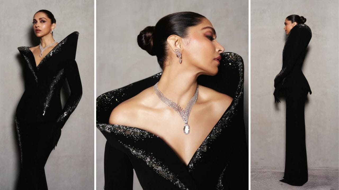 Deepika Padukone turned heads at the Cartier Gala in Dubai wearing custom Gaurav Gupta Couture. The structured black ensemble balanced futuristic tailoring with classic elegance, featuring a sharp jacket and floor-length skirt inspired by the designer’s Starfall silhouette. Intricate metal-burst embroidery made using deconstructed watch elements added drama and craftsmanship. The powerful yet refined look highlighted Deepika’s ability to carry avant-garde couture while maintaining timeless appeal, making it one of her most talked-about appearances this season.