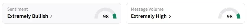 According to Stocktwits data, chatter on the platform increased by 1,190% over a 24-hour period, as of Tuesday morning, while sentiment remained in the ‘extremely bullish’ territory.