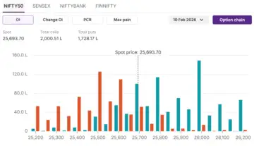 On the options data front, the 25,500 puts hold the highest open interest, indicating a strong support for the coming weekly expiry on 11th February. On the other hand, the 26,000 calls hold the highest open interest, indicating a strong resistance level for NIFTY50.