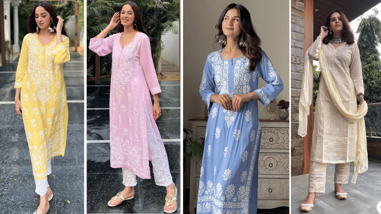 A pastel chikankari salwar suit offers understated grace, making it a refreshing choice for morning rituals or family brunches. The delicacy of embroidery stands out without being overpowering.