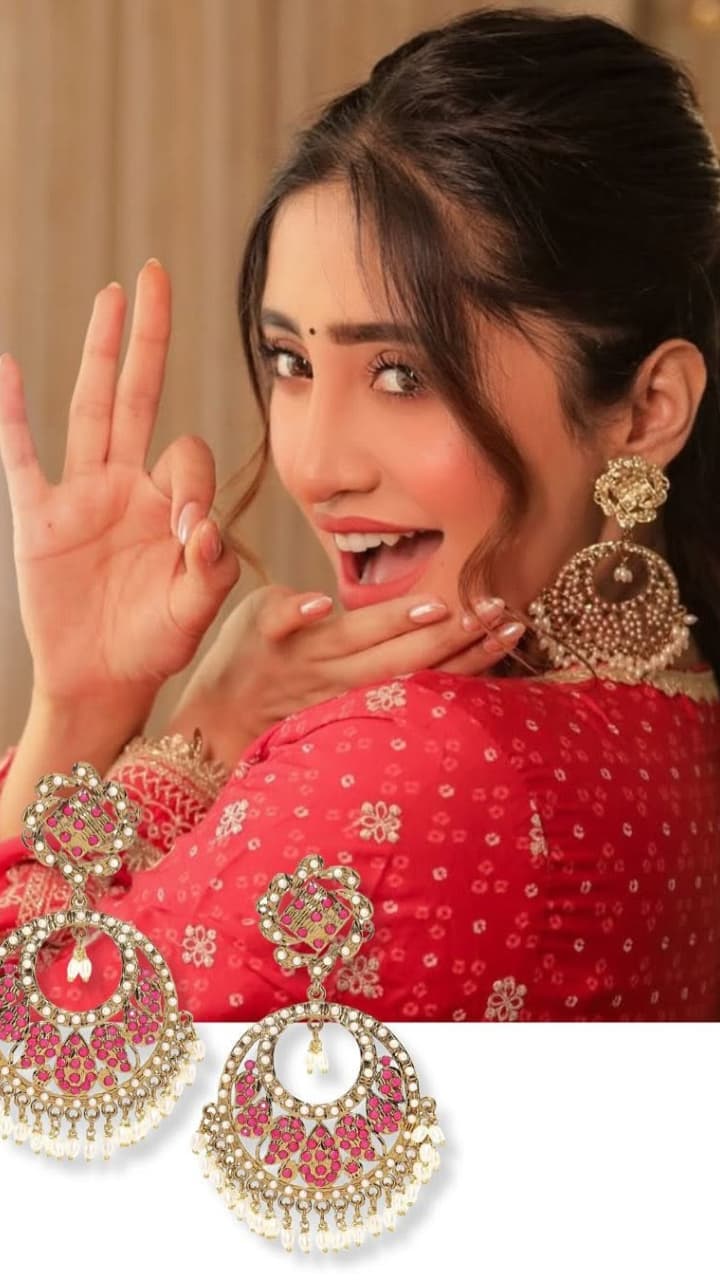 Buying gold studded earrings costs lakhs, instead choose antique moon earrings with gold coating. It has intricate carvings, ghungroo work, which will give 100% Maharani chic to the ears.