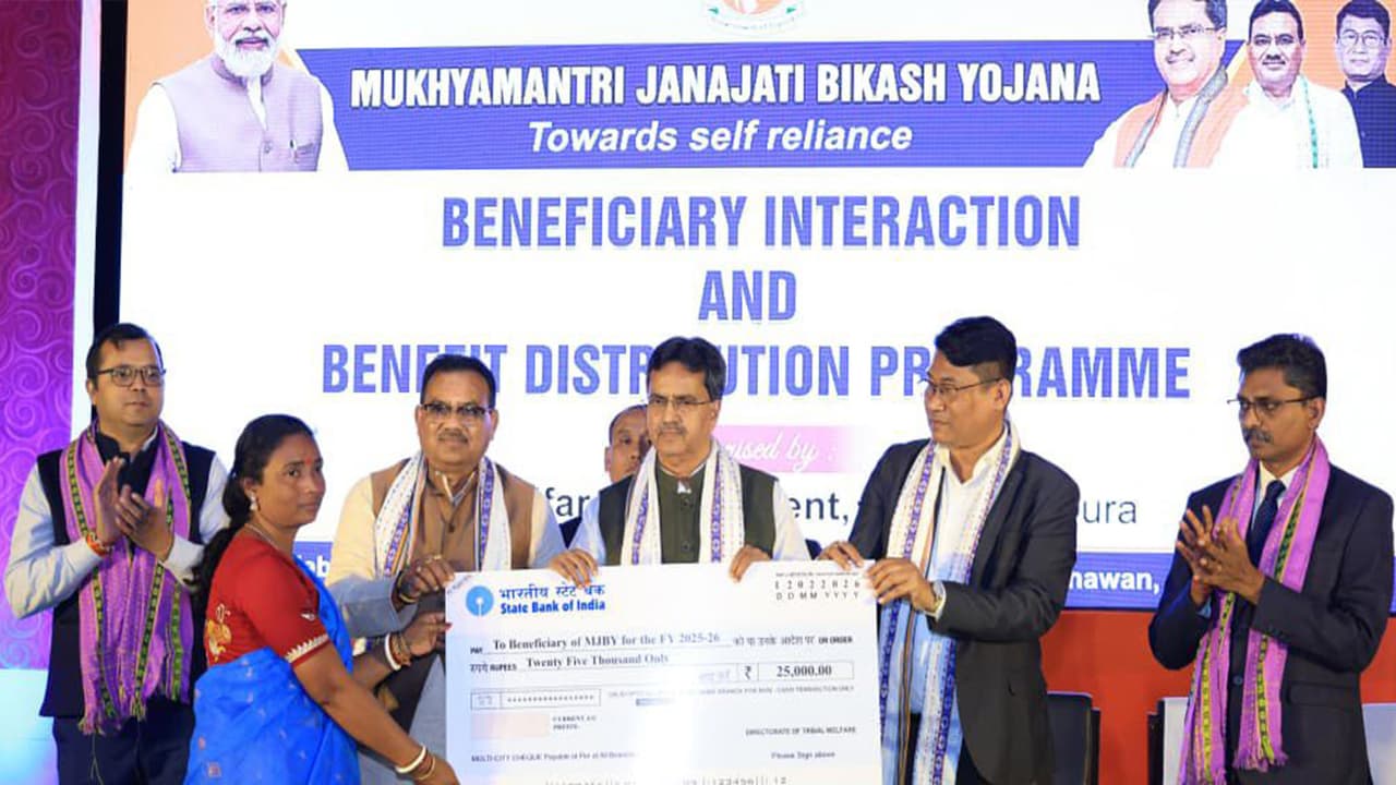 Tripura Chief Minister Prof Dr Manik Saha on Friday said that it is not possible to build Ek Tripura, Sreshtha Tripura without the real development of the Janajati brothers and sisters. He said that the key to the overall progress of the state lies in improving the socio-economic conditions of Janajati villages. “The present state government is working tirelessly to ensure that the benefits of development reach the last person in society,” he said. Chief Minister Prof Dr Manik Saha made these remarks while addressing the Mukhyamantri Janajati Vikas Yojana (MJVY) and financial assistance distribution programme at Rabindra Bhavan in Agartala today.