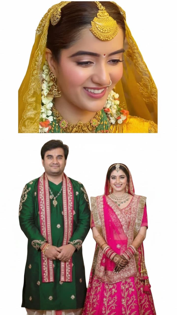 For a sangeet or engagement, choose a printed sky blue colored lehenga like Shipra Sharma. Which has pink, white, yellow and silver color detailing. Also the lehenga has fringe and gota work.