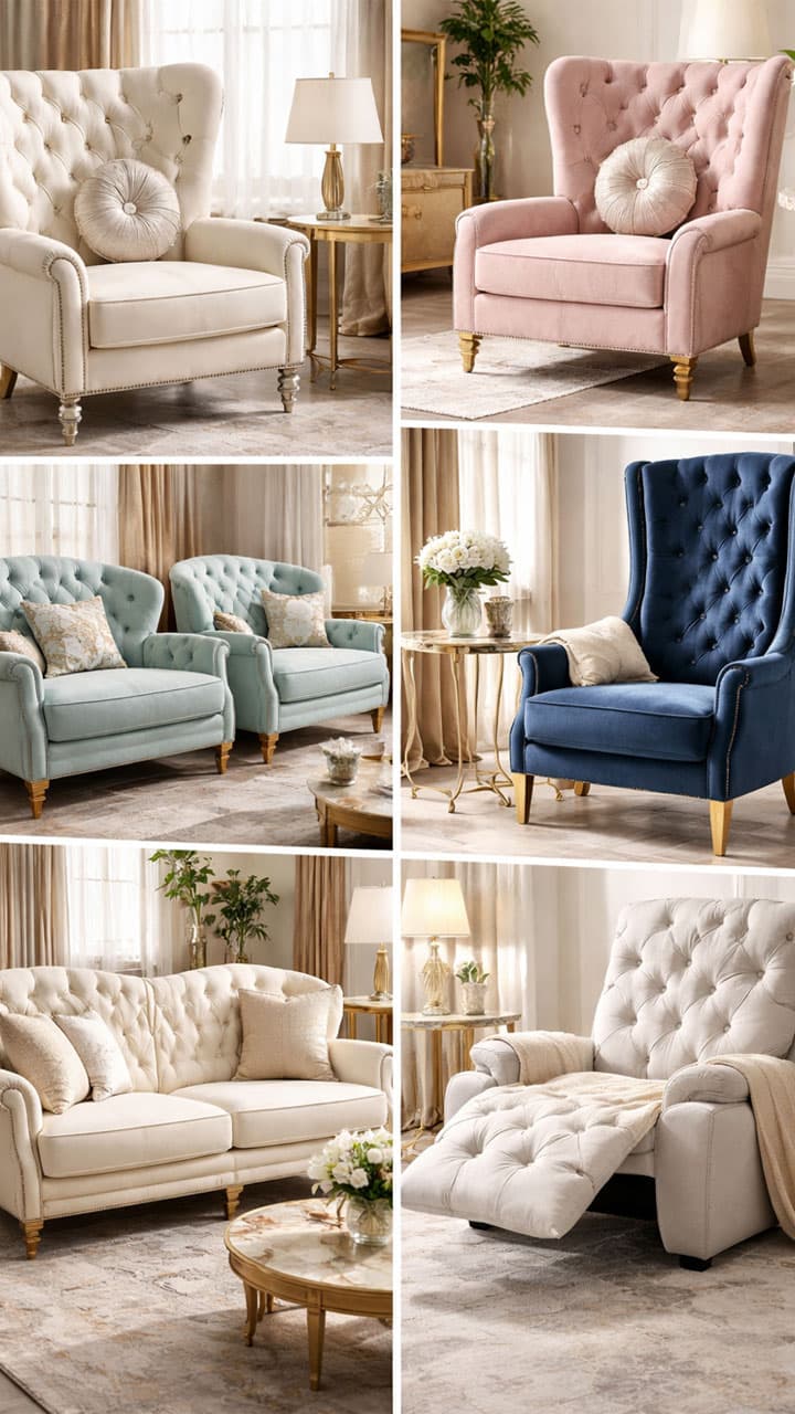 The cushioning in tufted sofa chair is more soft and deep, which gives a very comfortable sitting experience. If you sit on a chair for a long time, then you can choose this design.