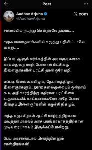 Aadhav Arjuna’s deleted social media post