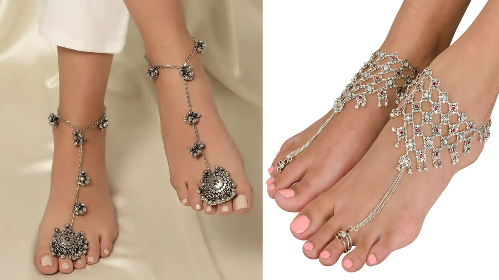 Toe ring and anklet are not only the sign of marriage but are also an important part of female beauty. Nowadays, the fusion form of these two is fast trending in the market, whose name is Attached Bichhiya-Payal Design. That means you are going to get two things done for one price. In this design, the anklets and anklets are connected to the same chain, which makes the feet look royal. In this you will find patterns ranging from daily use to party wear. Which also looks very comfortable to wear. See here the wonderful silver designs of the attached anklets.