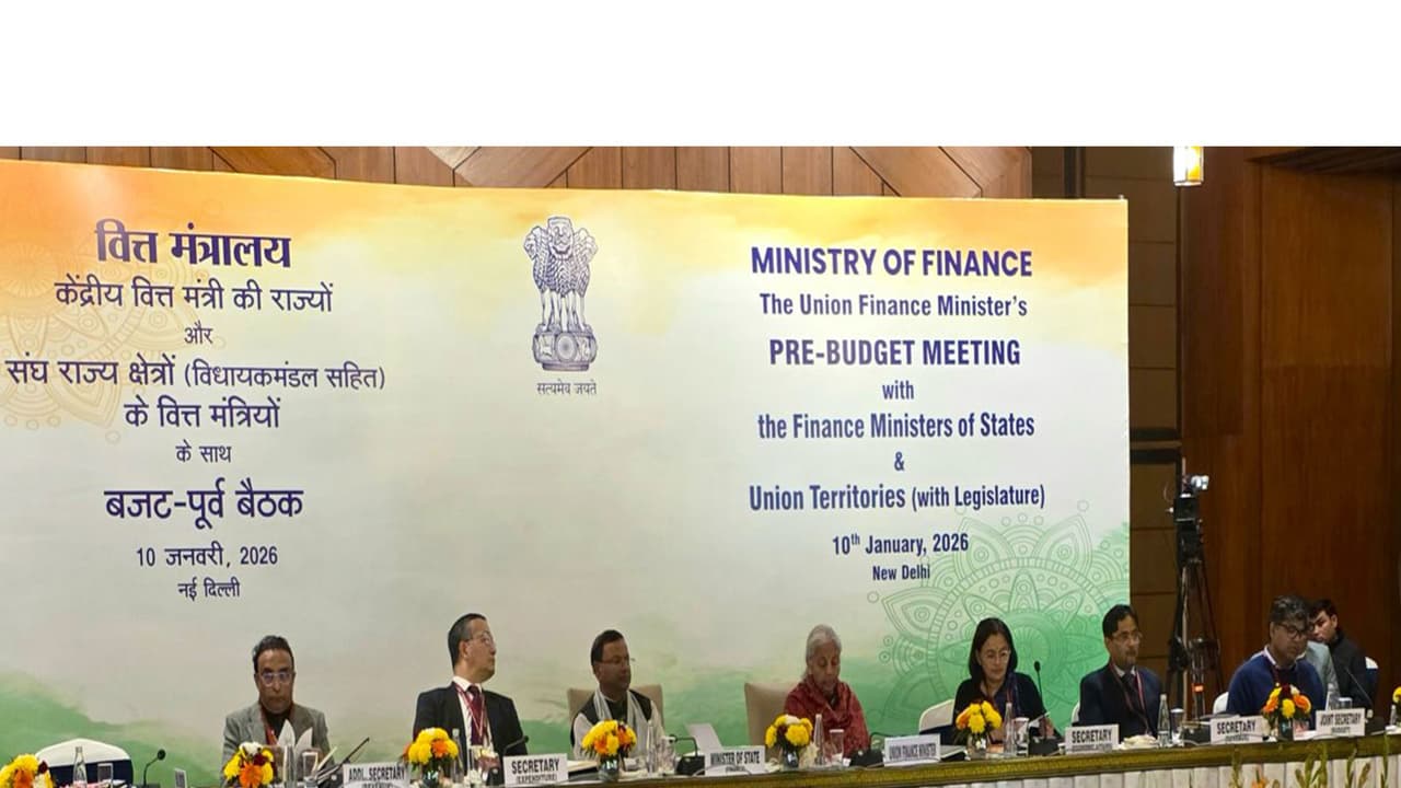 Union Minister for Finance and Corporate Affairs Nirmala Sitharaman on Saturday chaired the meeting on pre-Budget consultation with States and Union Territories (with Legislature) for the forthcoming Union Budget 2026-27. (ANI)