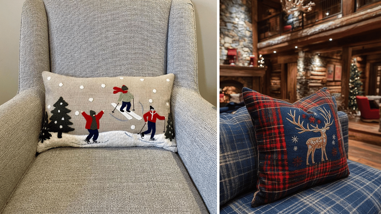Leaning into the ski chalet aesthetic is a big 2025 Christmas decor trend. Layer chunky knitted throws, faux fur blankets and tartan cushions on sofas and beds. Even if your tree is simple, these soft textiles instantly make the space feel cosy and expensive.