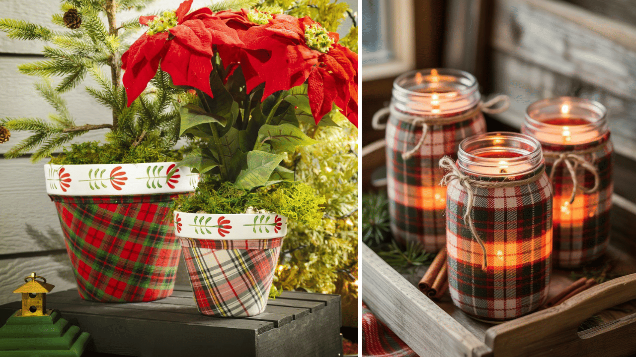 Give everyday plants and candles a festive makeover using leftover fabric or brown kraft paper. Wrap pots in tartan, linen or burlap and tie with ribbon or twine. This quick DIY makes even basic houseplants feel like part of a curated Christmas vignette.
