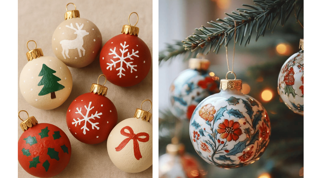 Instead of buying new ornaments, upcycle the ones you already own. Paint plain or chipped baubles with quick brush strokes for leaves, berries, stripes or tartan checks. Stick to your colour palette, so even mismatched pieces suddenly feel designer and on-trend.