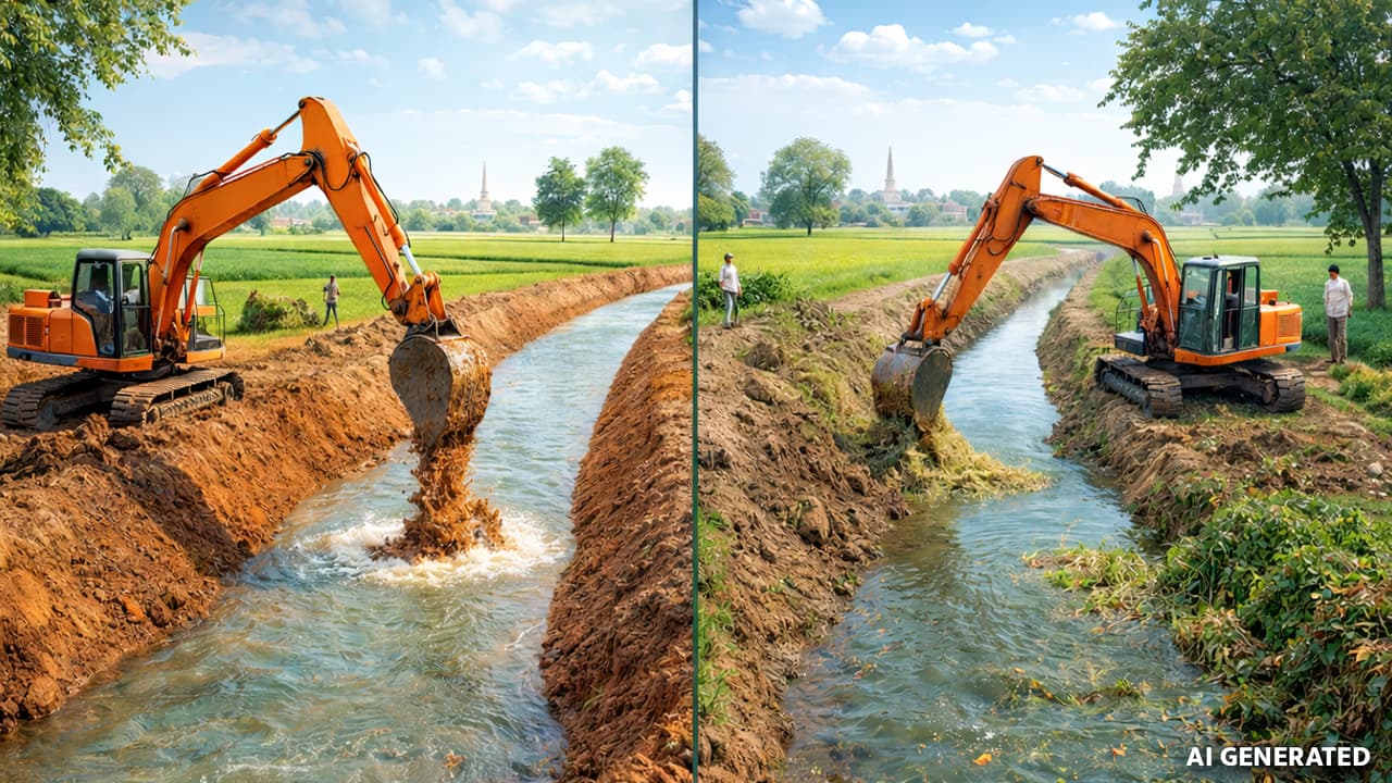 Regular cleaning of drains is very important to improve flood control and irrigation system in rural areas. Due to floods and water flow throughout the year, silt and silt gets accumulated in the drains, due to which there is difficulty in reaching the water to the fields.