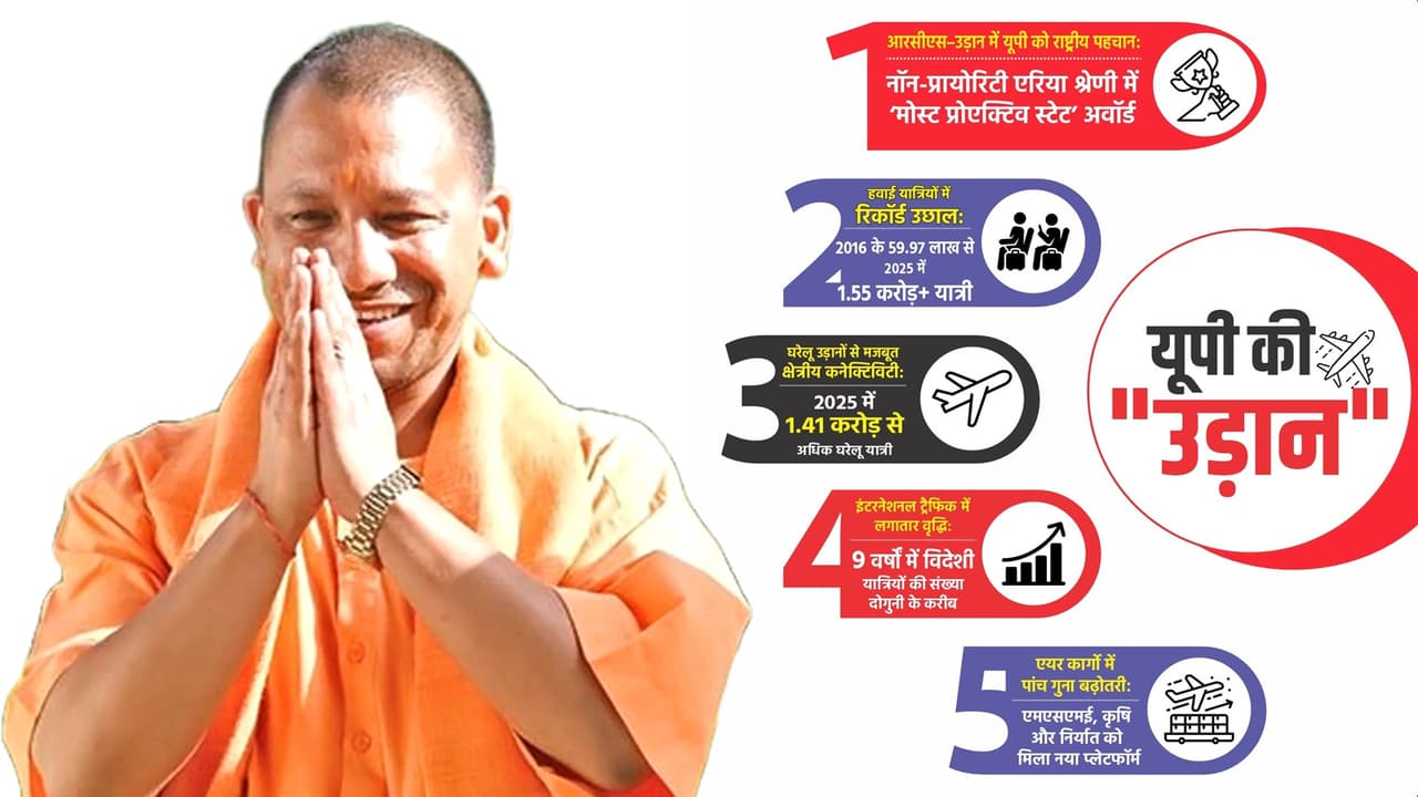 Under the leadership of Yogi government, Uttar Pradesh received the Most Proactive State Award under RCS-UDAN. Record growth in passenger numbers, air cargo and regional flights made UP the national aviation hub.